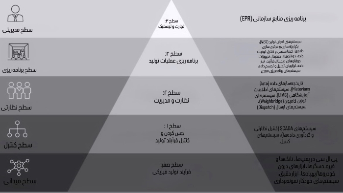 شکل ۲. هرم اتوماسیون برای استخراج معادن و فرآوری مواد معدنی